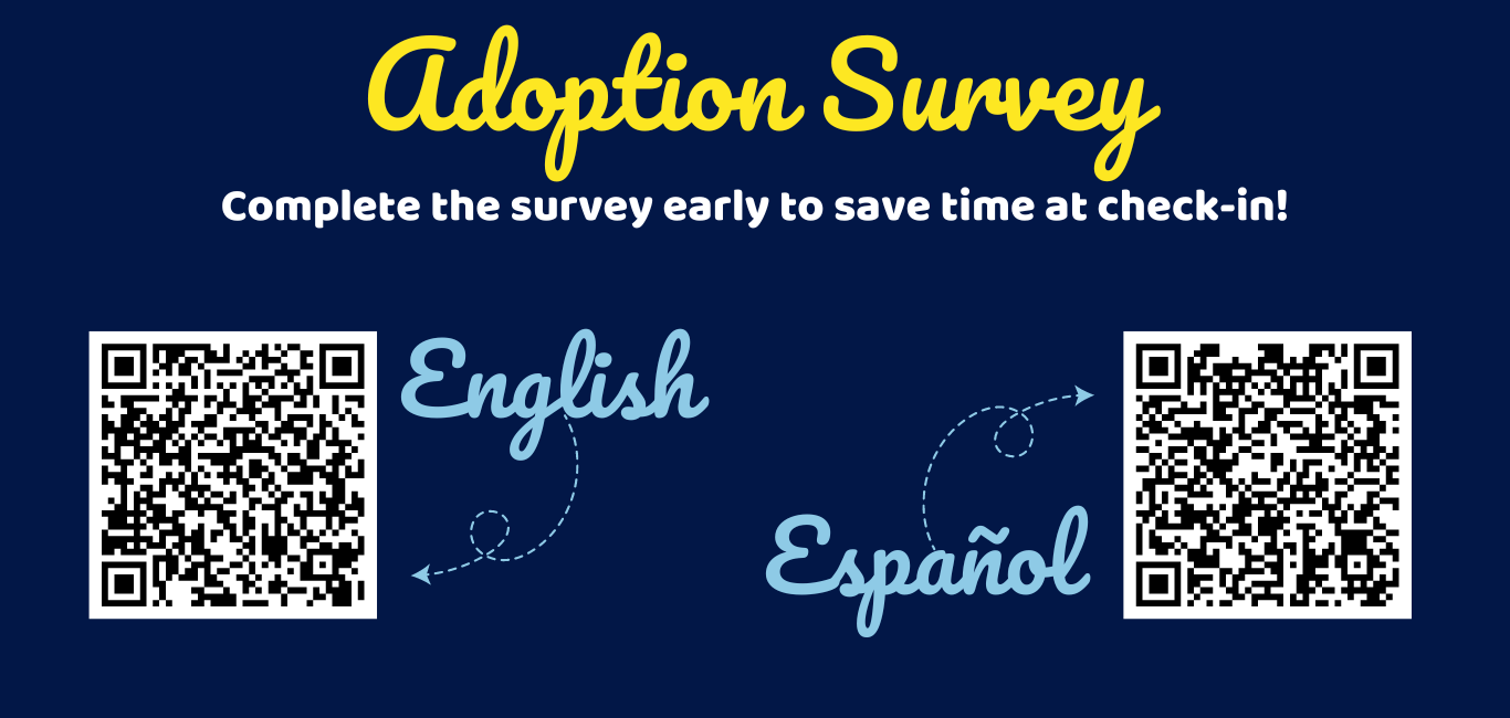 – Prepare to bring your pet home at the time of adoption. Due to the nature of the event, we are not able to hold animals for individuals at the event space for a later pick-up day or time.